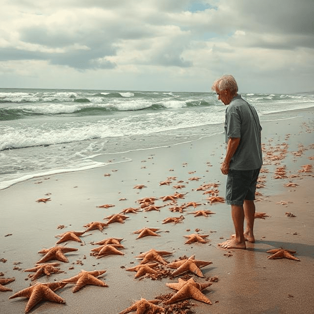 Imagine walking along a beach after a storm, surrounded by thousands of stranded starfish. That’s the backdrop of this story. The image of an old man sees a young boy. The boy is diligently throwing the starfish back into the ocean. This sparks something within me. It is a reminder that every action, no matter how small, matters.